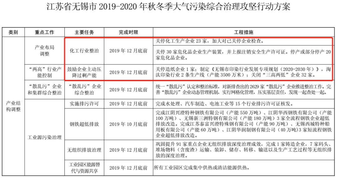 根據細分任務統(tǒng)計:2019年12月底前,江蘇省焦炭減產665萬噸,關?;て髽I(yè)350多家;浙江省關停化工企業(yè)135家,印染品減產30000萬米 ,磚瓦減產40000萬塊;山西省煤炭減產400萬噸,焦炭減產650萬噸……