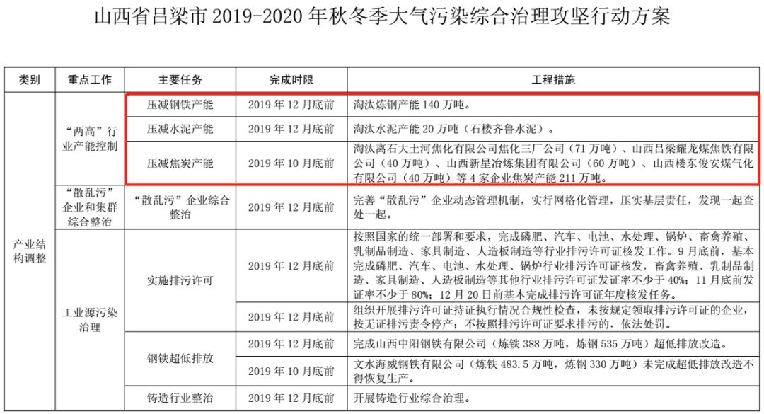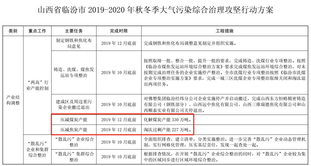 《汾渭平原2019-2020年秋冬季大氣污染綜合治理攻堅行動方案》要求